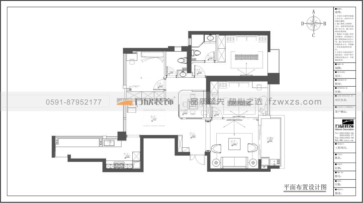 戶型原本就相對(duì)工整,并沒做太多調(diào)整。入戶花園成為家里的天然玄關(guān)。入門后的餐廳和像房間一樣大的廚房相連,這里是女主人的心頭好,也許是每個(gè)愛烹飪的人都?jí)粝氲奈枧_(tái),儲(chǔ)物和功能都可以在這里滿足,甚至單盆水槽的出現(xiàn)也是為了能做到水果和蔬肉的分離??蛷d天然紋路的大理石像山脈般綿延,而書房則設(shè)于客廳后,獨(dú)辟處一方寧?kù)o之所。異于原始戶型的不同,向房間借了點(diǎn)位置,擴(kuò)充了走道的寬度,主臥里有休閑的飄窗坐,客臥的陽臺(tái)也改為小茶室,配備了茶水臺(tái)和書柜供男主人喝茶看報(bào)。房間內(nèi)并沒有塞滿柜子,而是將儲(chǔ)物空間化于各個(gè)房間中,留出更過的空間讓房間更具通透性。淺色的壁布搭配胡桃木色木飾造型面板總能讓人想到歐式的隨意,但是房間里地面的石材拼花鋪貼,墻面上山巒起伏的絢麗都讓人覺得有別于歐式,香檳金的線條穿插在整個(gè)設(shè)計(jì)中,猶如畫龍點(diǎn)睛之筆,房間便有了自己的氣質(zhì)。軟裝遵循了雅致知性的基調(diào),在其中搭配了一些古拙木雕和精美刺繡,歐式的內(nèi)斂味道也浸染開。低調(diào)的奢華,靜謐的絢爛,在家中細(xì)琢,品味人生曼妙。